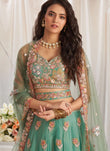Lime Green Sequins Zarkan Organza Indian Lehenga Choli for Wedding