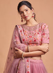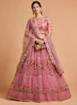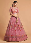 Pink Dori Work Net A Line Embroidered Lehenga Choli